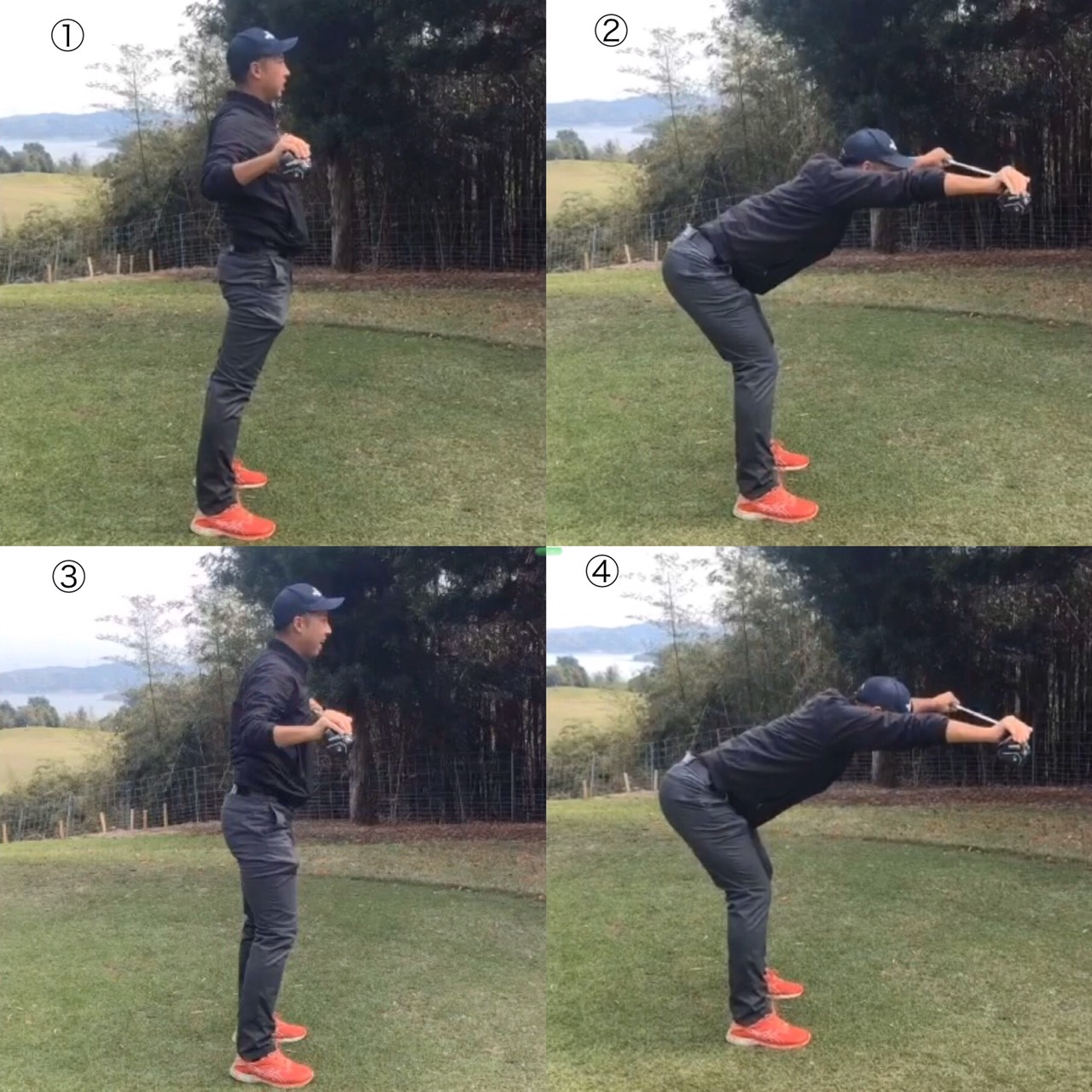 次は、アドレスを取る為に必要な体の前傾を作る為のトレーニングです!