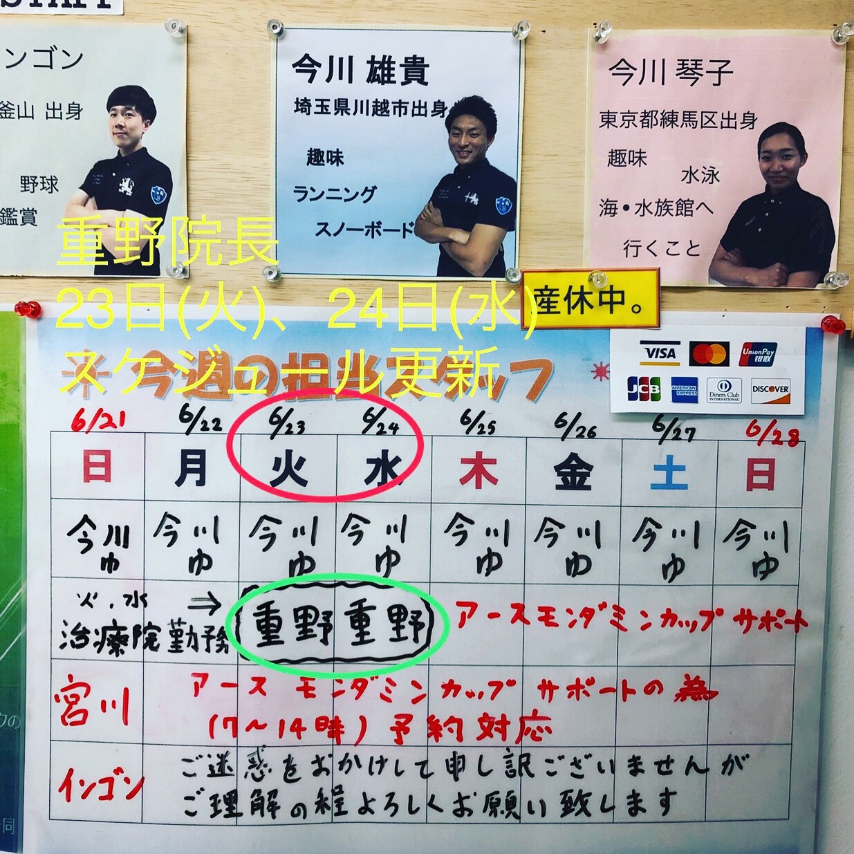 また、22日(月)〜24日(水)まで、重野、今川の2人体制となります!