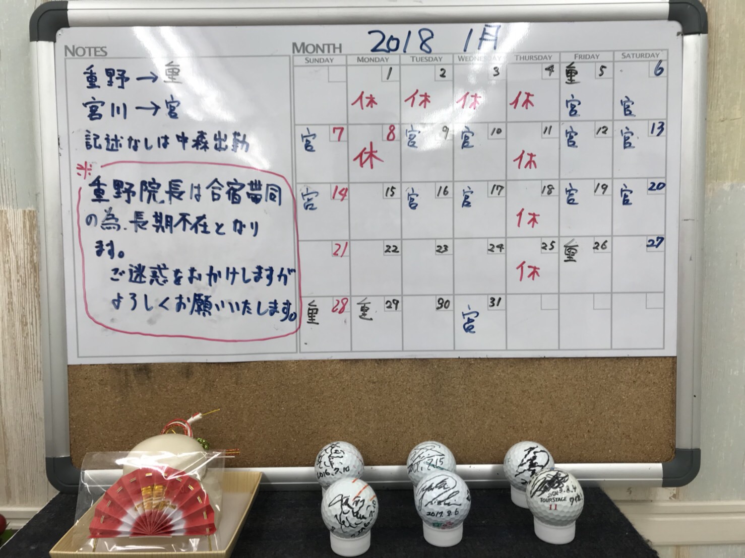 2018年度開始 1月営業スケジュール 門前仲町 江東区 はりきゅう整骨院 アツキーフィットネス